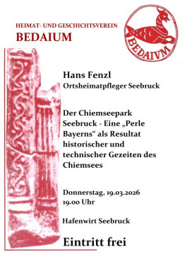 Der Chiemseepark Seebruck - Eine „Perle Bayerns“ als Resultat historischer und technischer ,,Gezeiten" des Chiemsees - Vortrag von unserem Ortsheimatpfleger Hans Fenzl am Donnerstag, 19.03.2026 im Hafenwirt, Seebruck